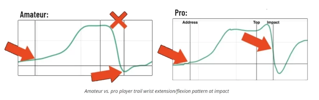 We have also learned that golfers who are able to decrease the amount of extension in their wrists closer to the transition instead of closer to impact can have an easier time increasing clubhead speed.